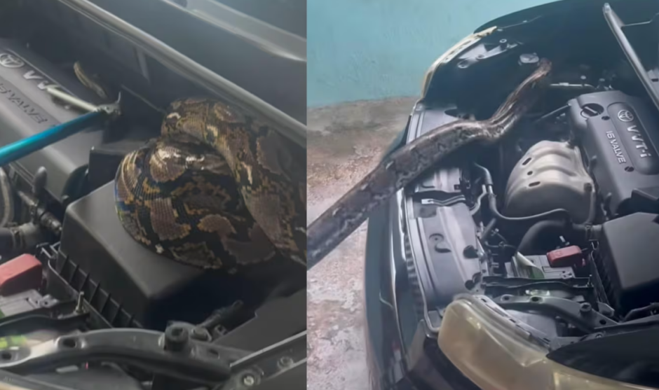 Según contó el conocido cazador de animales invasores, una joven natural de Bayamón fue a verificar el aceite de su carro y, al abrir el bonete, se topó con una pitón reticulada enroscada en el área del motor.