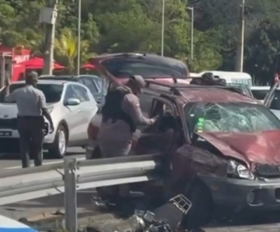 Un accidente de tránsito que involucró múltiples vehículos ocurrió este domingo en la autopista 6 de Noviembre, a la altura del cruce de Haina. Según información preliminar, el siniestro afectó automóviles y camionetas, con daños registrados en la zona frontal de los mismos.