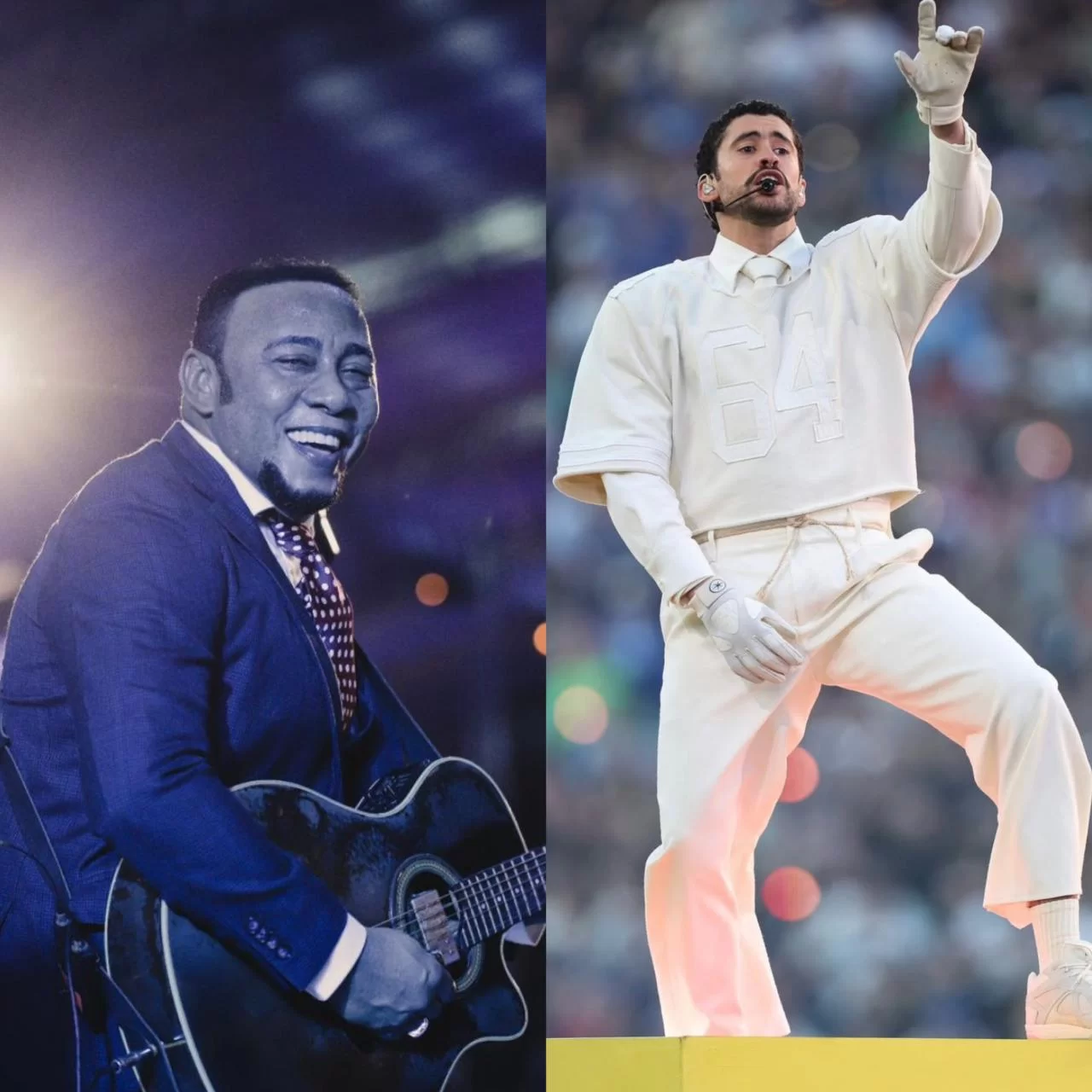‘Qué rico es ser latino… ¡HOY SE BEBE! La bachata presente en el Super Bowl. Gracias, Bad Bunny, por el cariño y el respeto. De mi pueblo para el mundo, su Mayimbe’, escribió Santos en sus redes sociales.