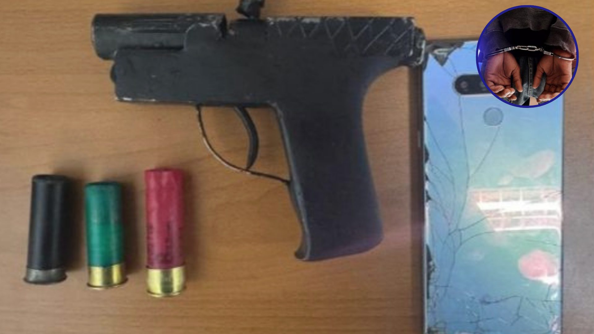 En el lugar del arresto se le ocupó una escopeta artesanal calibre 12 mm, con un cartucho en la recámara, dos adicionales y un celular. A causa del forcejeo, un agente policial sufrió una fractura en su pierna derecha.