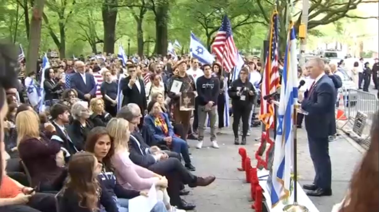 Por otra parte, algunos neoyorquinos con banderas israelíes se reunieron en homenaje al Día de Conmemoración del Holocausto, el lunes por la noche en Riverside Park, en el Upper West Side.