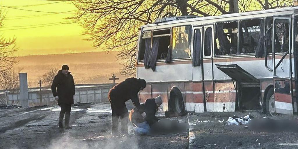 El ataque se ha producido en la ciudad de Terenivka, según ha informado la Policía. Las imágenes publicadas por el Servicio Estatal de Emergencias mostraban un autobús carbonizado con las ventanas destrozadas que se había salido de la carretera.