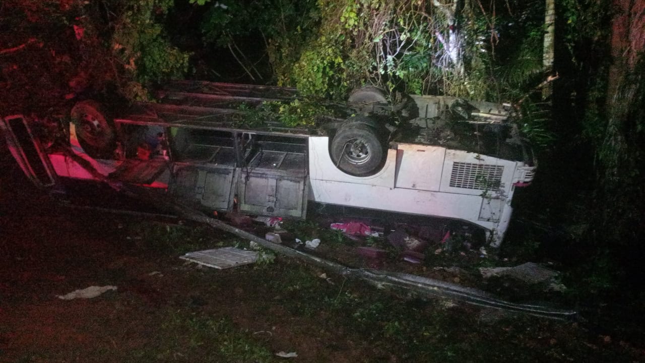 De acuerdo con las informaciones preliminares, el choque se produjo cuando el conductor perdió el control del vehículo. Como consecuencia, el autobús terminó volcado en plena vía, generando momentos de tensión entre los ocupantes.