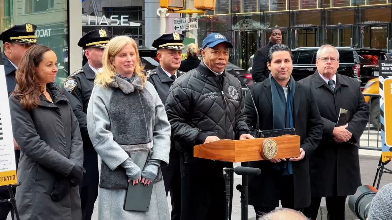 El alcalde Eric Adams, junto a la comisionada de policía, Jessica Tisch, anunciaron que la celebración de fin de año en Times Square contará con un chequeo móvil secundario durante el evento como una nueva medida para reforzar la seguridad.