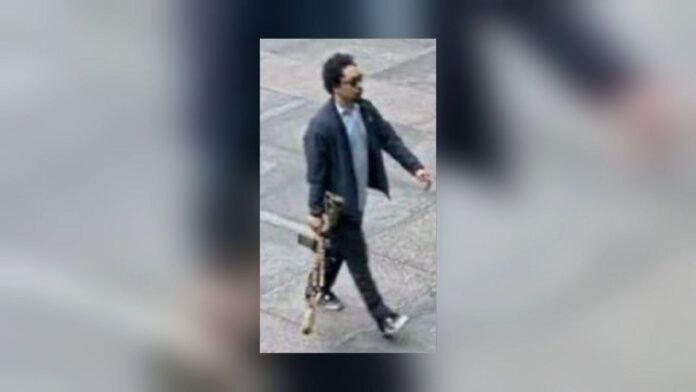Tamura condujo por todo el país en los días previos al ataque hasta llegar a la ciudad de Nueva York, dijo Tisch. Un video de vigilancia lo muestra saliendo de su BMW frente al edificio alrededor de las 6:30 de la tarde del lunes, vistiendo una camisa de botones y una chaqueta con el rifle en su costado.