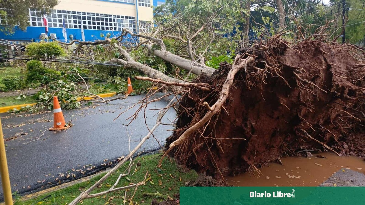Varios árboles y grandes ramas han caído la tarde de este lunes en distintos puntos del Gran Santo Domingo como consecuencia de las intensas precipitaciones y ráfagas de vientos asociadas al fortalecimiento de una vaguada que incide desde hace días sobre el territorio nacional.
