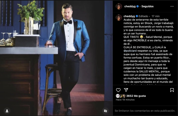 OJALÁ SE ENTREGUE, y OJALÁ la Policía Nacional respeten su vida, ya que supe que su hermano fué asesinado de forma confusa. Estoy en puerto Rico, pero desde aquí mi mensaje a toda la juventud Dominicana, para que no caigan en hacer lo malo, y para que cuidemos la SALUD MENTAL, porque solo con un problema de salud mental un muchacho tan bueno y educado, lleno de oportunidades en el mundo del arte, el cine, el modelaje, joven buenmoso, TODOO!