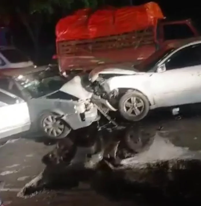 El siniestro involucró dos automóviles, un Hyundai Sonata color blanco y un Toyota Corolla gris, que impactaron de forma violenta, provocando daños significativos en ambos vehículos y lesiones de diversa consideración a sus ocupantes.