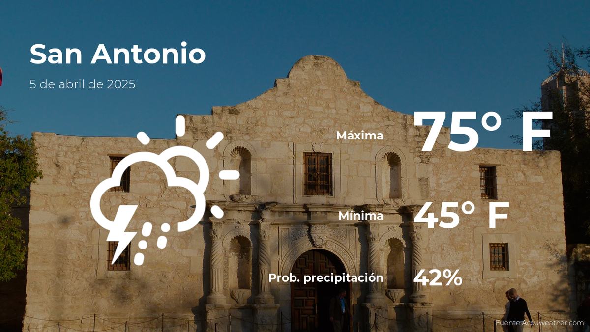 Si eres vecino de San Antonio o te encuentras de viaje esta ciudad del sur de Texas, es importante conocer de primera mano cómo va a estar el clima este sábado 5 de abril. Desde veranos calurosos hasta inundaciones ocasionales, es necesario saber qué esperar y cómo prepararse para hoy en la ciudad.