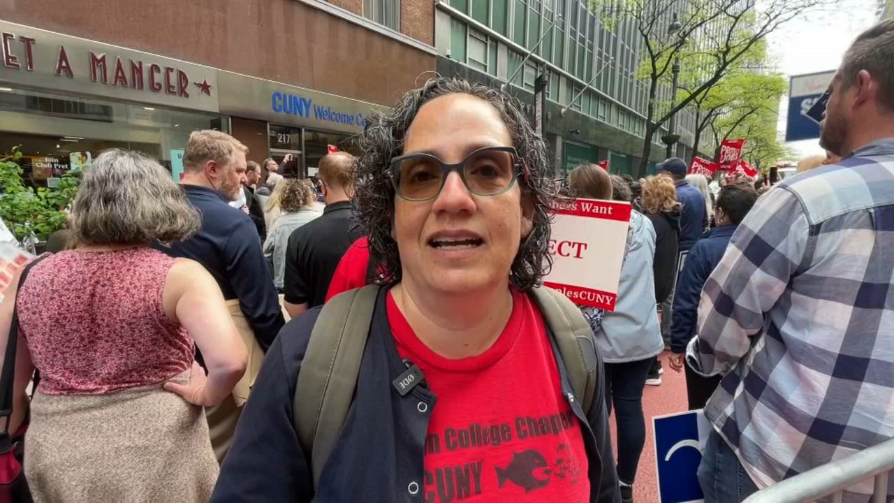 “Hoy el enfoque es en la seguridad de trabajo para esos profesores que son más del 50% que solo trabajan ‘part time’, dijo Carolina Banjunios, profesora de CUNY. “Y es un problema porque el salario que ellos ganan es muy poquito en comparación con los profesores de planta. Estamos demandando de la administración de CUNY un salario digno y seguridad de trabajo para ellos”.