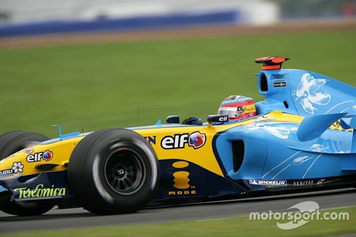 Mild Seven ya había desaparecido del coche, y su lugar lo ocupaba en los pontones y la cubierta motor ‘Team Spirit’. Y el 1, cómo no, aparecía en el morro como señal de que dentro iba un campeón del mundo. Renault dio con la tecla gracias en gran parte al sistema ‘Mass dumper’, que fue considerado ilegal y prohibido a partir de la segunda mitad de temporada. Era un sistema colocado en la zona delantera del coche que permitía un mejor reparto de pesos, mayor estabilidad y menor desgaste de neumáticos. Cuando Renault lo retiró, ya era demasiado tarde para Ferrari y, pese a un rendimiento brillante en la última parte del campeonato, Schumacher no pudo retirarse con su octavo título. Alonso resistió y se impuso, logrando su segunda corona.