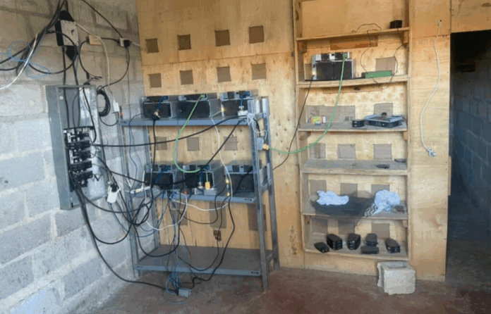 En el lugar, una vivienda de dos niveles en estado de deterioro, fueron ocupados siete equipos de minería de criptomonedas, incluyendo un dispositivo ASIC de la marca Avalon, además de una parábola, un monitor, un router, un abanico de enfriamiento y un sistema eléctrico improvisado con conexiones ilegales.