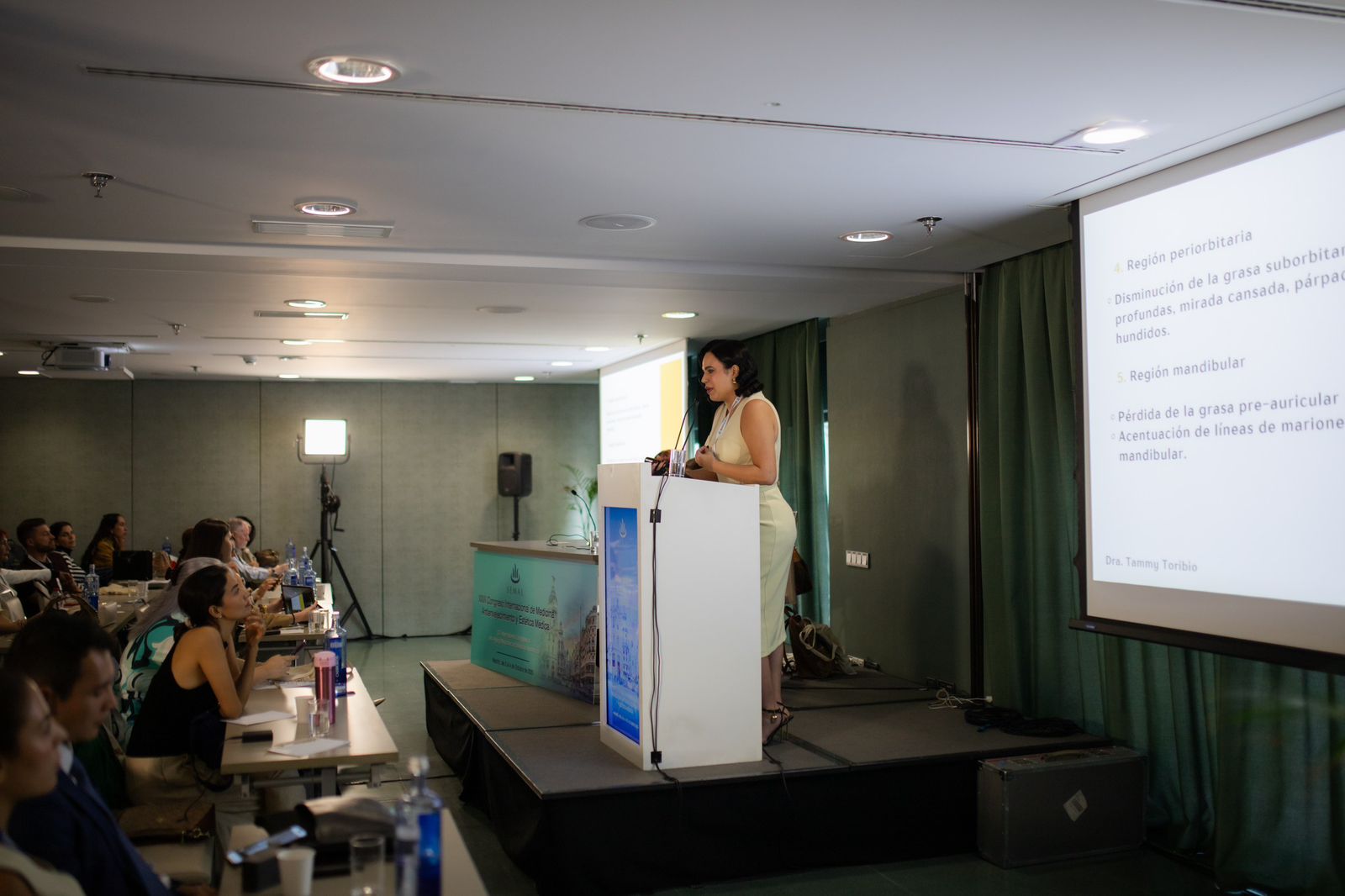 Durante el prestigioso encuentro, la Dra. Toribio presentó la conferencia titulada “Abordaje Estético del Paciente Oncológico: Dermocosmética, tratamientos de reposición de volumen e inductores de colágeno en rostro cadavérico”, donde compartió con profesionales de distintos países su experiencia y protocolos clínicos enfocados en la recuperación estética, funcional y emocional de pacientes que han atravesado procesos oncológicos.