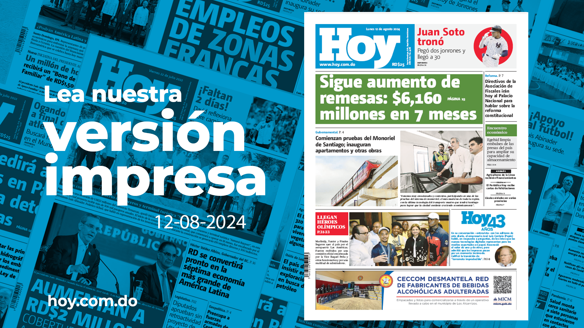 Periódico HOY: Somos un medio con alta credibilidad, constantemente actualizado y que ofrece informaciones variadas y completas de política, economía, deportes y entretenimiento, tanto del ámbito nacional, como internacional.