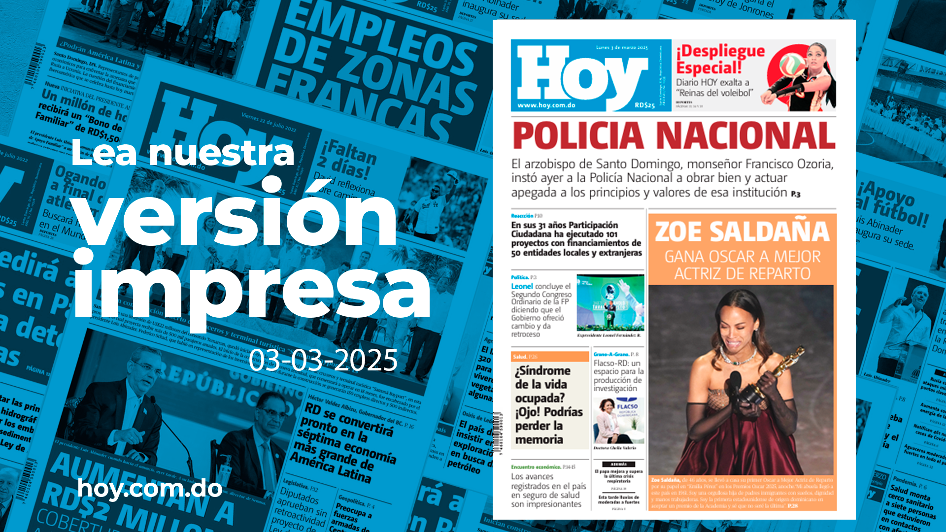 Periódico HOY: Somos un medio con alta credibilidad, constantemente actualizado y que ofrece informaciones variadas y completas de política, economía, deportes y entretenimiento, tanto del ámbito nacional, como internacional.