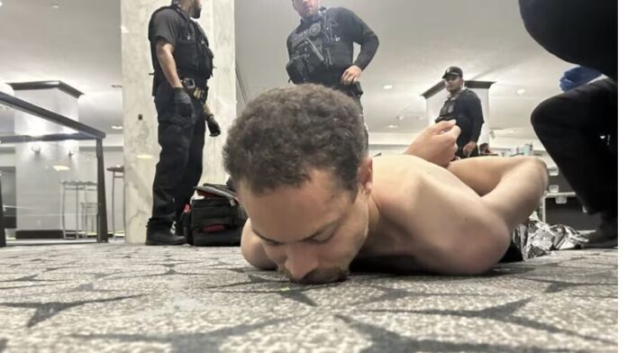 Una fotografía, compartida en la cuenta de Truth Social del presidente Donald Trump, del sospechoso que fue detenido durante la cena de la Asociación de Corresponsales de la Casa Blanca en Washington el sábado. Vía Truth Social.