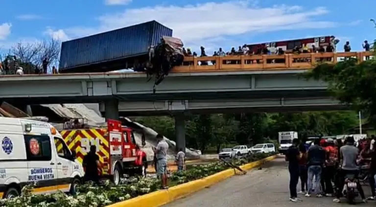 Se produjo un accidente en el puente sobre la autopista Duarte, cruce Jarabacoa, La Vega, cuando un camión furgón, cargado, fue impactado por un carro que transitaban en la vía.