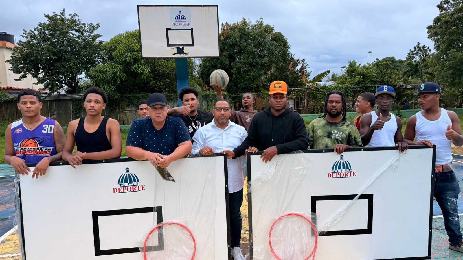 FVDigital, Monte Plata. — El diputado por la provincia de Monte Plata, Jhon Contreras, junto al director provincial de Deportes, Humberto Vilchez, realizó la entrega de nuevos tableros para la cancha Luz y Vida, ubicada en el sector Los Guandules del municipio de Sabana Grande de Boyá.