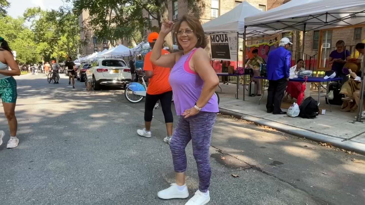 Cristina López, vecina de Long Island City en Queens, sudó hoy la gota gorda haciendo ejercicios y bailando al mismo tiempo. Aprovechó las clases gratis de zumba, una de las tantas actividades organizadas por el Departamento de Transporte, como parte del programa NYC Summer Streets.