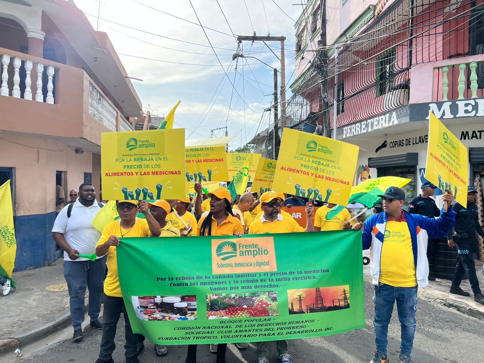 El Pregonero, Santo Domingo.- El Partido Frente Amplio realizó su cuarta caminata protesta en el municipio Santo Domingo Este, contra el alto costo de la canasta básica familiar, y exigiendo la rebaja de los alimentos y la medicina.