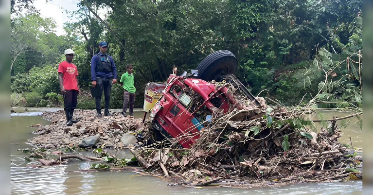 Según informaciones preliminares, el vehículo se dirigía a entregar materiales cuando fue sorprendido por un aumento repentino del caudal, siendo arrastrado por la fuerte corriente.