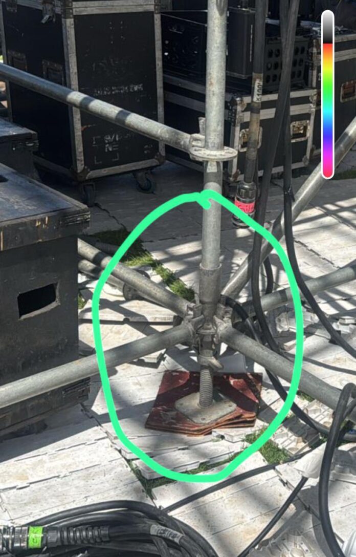Uno de los organizadores explicó en un video difundido en la red social X que, aunque se colocaron soportes adicionales tras una primera revisión, las lluvias del día anterior causaron nuevos hundimientos, comprometiendo aún más la seguridad del montaje. A raíz del informe del ingeniero, se decidió desmontar parte de la estructura y descargar el peso general como medida preventiva.