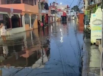 Inundación en calle impide salida de moradores en Villa Duarte