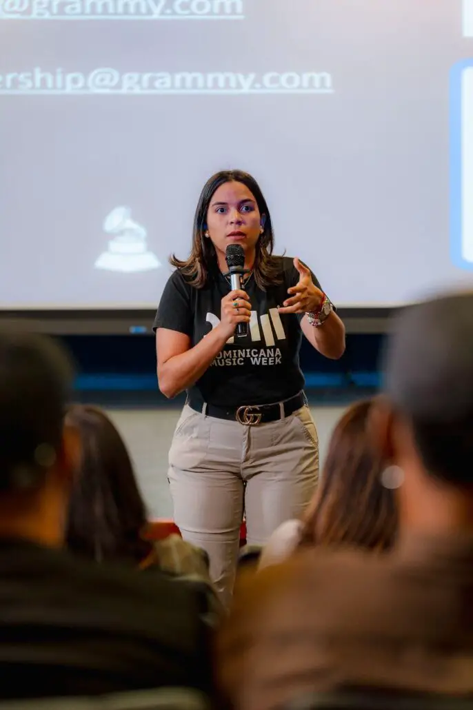 Además, la jornada tuvo un momento destacado con la intervención de la cantautora dominicana Techy Fatule, quien compartió su experiencia como miembro activo de la Academia y cómo esa vinculación ha impactado su carrera artística, brindándole acceso a una red global de creadores y validación en espacios clave de la industria. Techy obtuvo su primera nominación al Latin Grammy con la canción “Que me quedes tú” en la categoría de “Mejor Canción Tropical”, compitiendo entonces con artistas de la talla de Pablo Milanés, Marc Anthony y Juan Luis Guerra.
