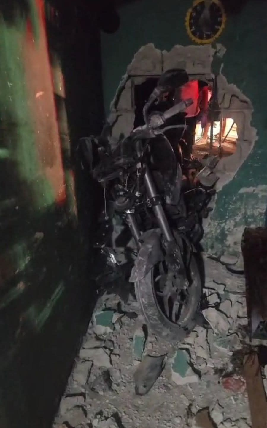 El fuerte estruendo del choque alertó a los residentes del sector, quienes al salir de sus casas se encontraron con una escena devastadora. La motocicleta había quedado incrustada en la pared de la casa, causando daños considerables en la estructura.