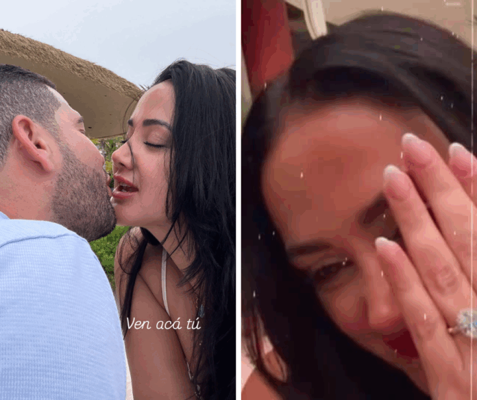 Fiallo publicó una imagen besándose con un hombre misterioso, en la que luce un llamativo anillo de compromiso, acompañada del mensaje: “sí, quiero tu apellido pa’ siempre”.