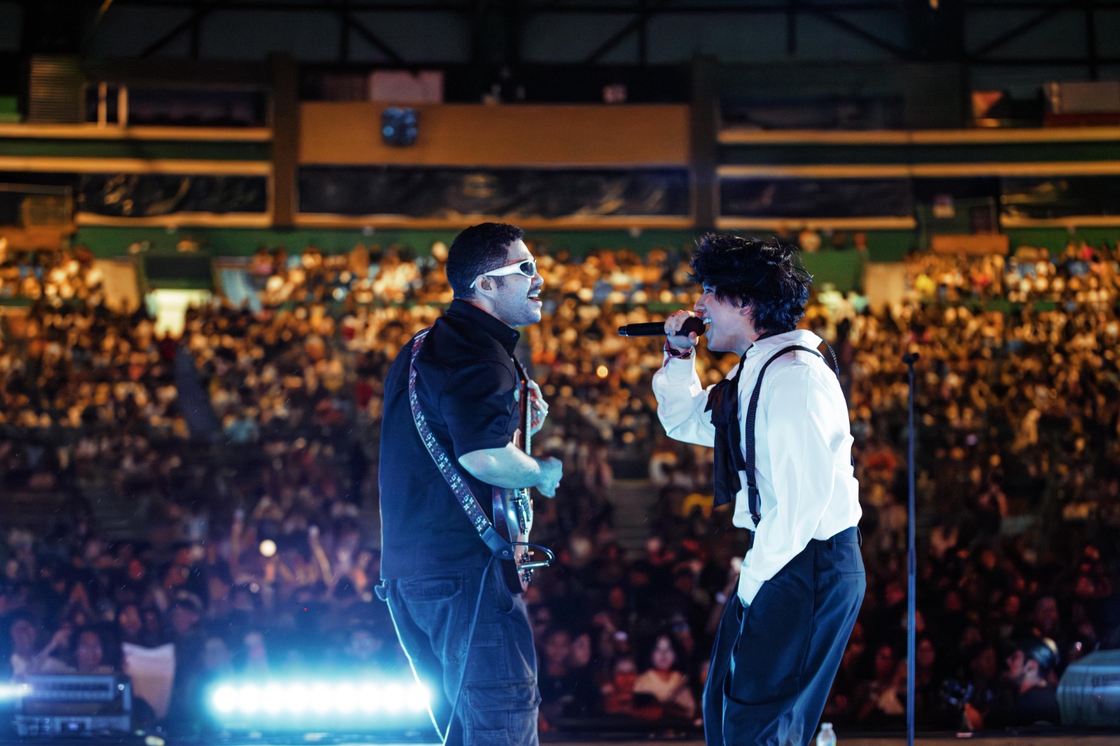 Acompañado de una guitarra eléctrica, batería y bajo, deleitó al público con un set que incluyó las canciones de su primer EP “Bye Ya Te Olvidé”, “Ana”, “Bajita”, “Tú y Yo”, “My Fault” y “Otro Planeta”. Su enérgico pop punk resonó entre los asistentes, marcando una excelente apertura para el esperado show de Morat.