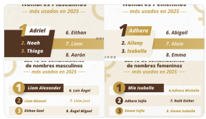 La Junta Central Electoral (JCE) informó que, según los registros civiles de 2025, Adhara fue el nombre femenino más frecuente en República Dominicana, mientras que Adriel lideró la categoría masculina.