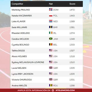 Redacción.- La dominicana Marileidy Paulino se posiciona como la número 1 del mundo del atletismo en el ranking de la World Athletics en 400 metros con 1,472 puntos. Luego de su impresionante triunfo en la primera fecha de la Liga Diamante celebrada en Doha.