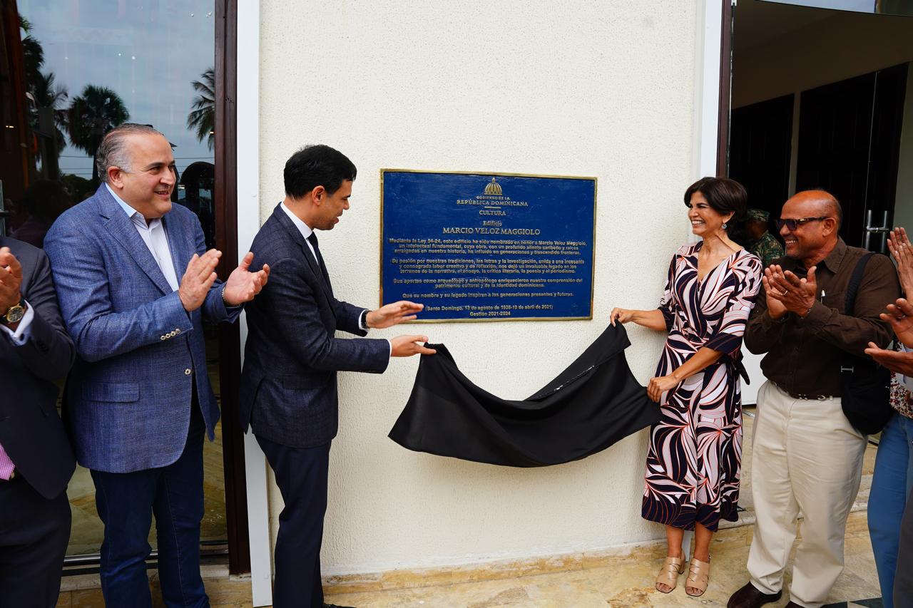 Santo Domingo.- El Ministerio de Cultura (MINC) develó hoy una tarja que oficializa la designación de su edificio sede en honor al escritor, historiador y antropólogo dominicano Marcio Veloz Maggiolo.