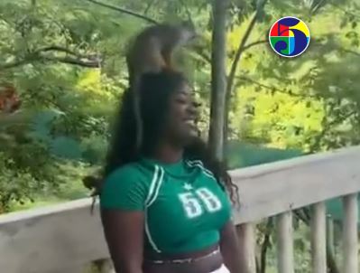 Redacción.- Quedó captado en video el momento en que un mono le robó una pestaña postiza a una joven y se la llevó rápidamente, generando risas entre los presentes.