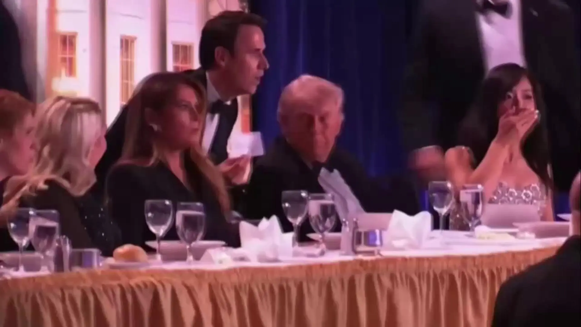 En las imágenes grabadas en vídeo se ve cómo la velada de corresponsales se ha visto interrumpida, lo que ha provocado una reacción inmediata por parte de la organización del evento. Acto seguido, se ha solicitado a los asistentes que abandonaran el lugar, en medio de aplausos que acompañaron la salida.