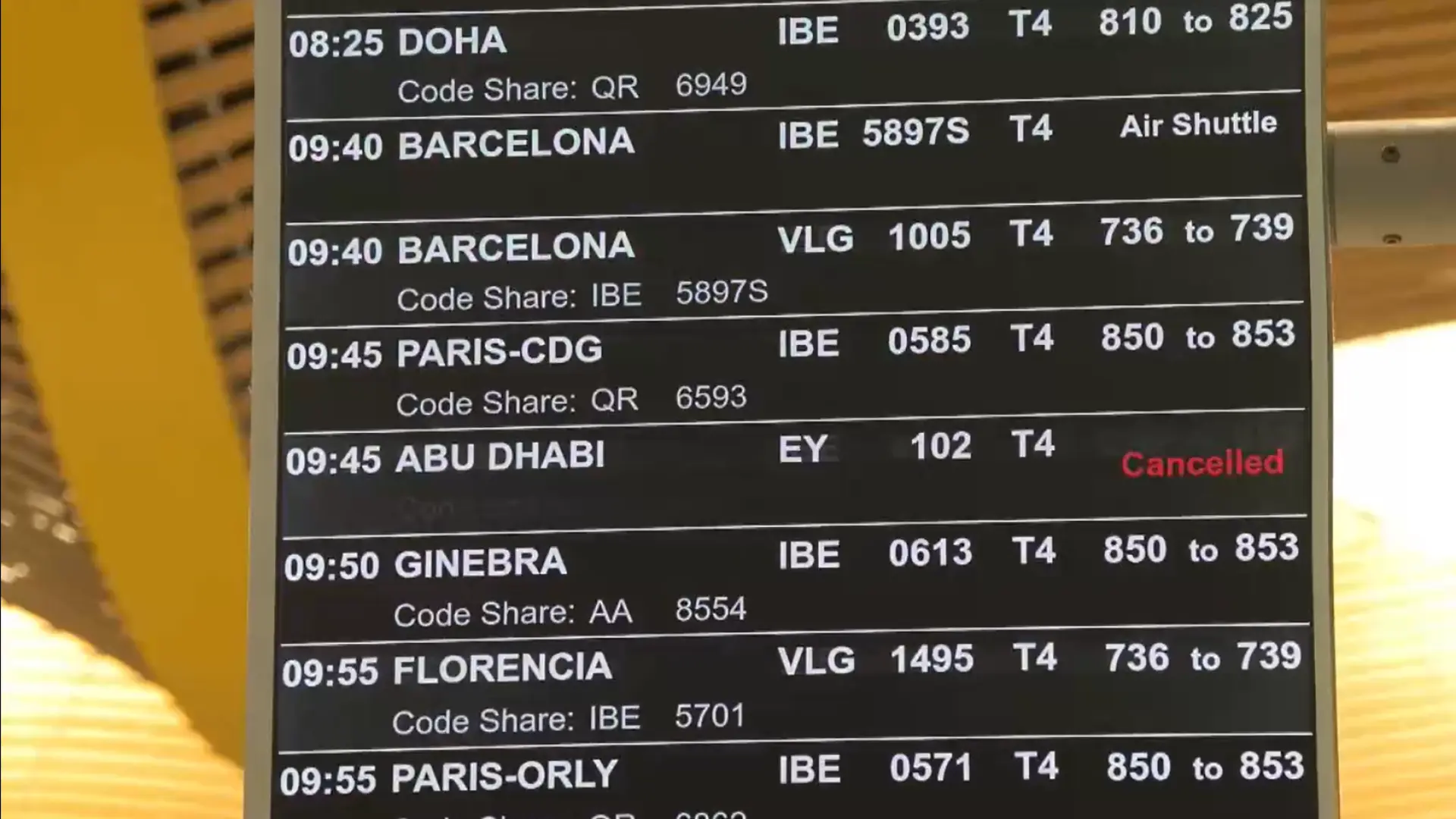 Desde el estallido del conflicto, 85 vuelos que conectan España con Oriente Próximo han sido cancelados. De los 42 vuelos programados para el sábado pasado (20 en Madrid y 22 en Barcelona), 24 fueron cancelados (10 en Madrid y 14 en Barcelona). Mientras que de los 46 programados para el domingo (18 en Madrid, 26 en Barcelona y dos en Málaga), 36 tuvieron que ser cancelados (10 en Madrid, 24 en Barcelona y dos en Málaga).
