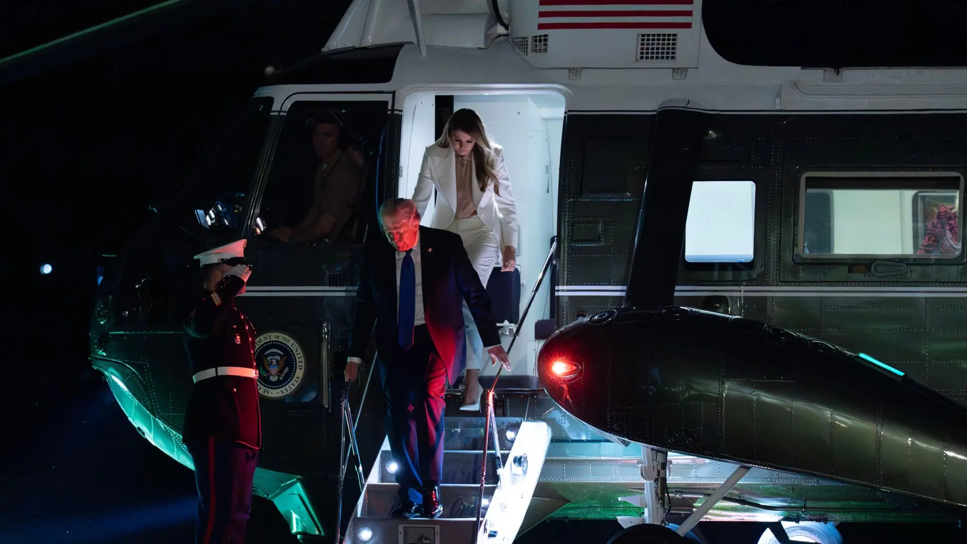 Esta semana, las cámaras captaron un momento de tensión entre Donald Trump y su mujer, Melania, a bordo del helicóptero presidencial, justo cuando este había aterrizado en el helipuerto de la Casa Blanca procedente de Nueva York, donde Trump pronunció su discurso frente a la ONU. Instantes antes de que bajasen del helicóptero, ambos fueron grabados a través de las ventanillas.