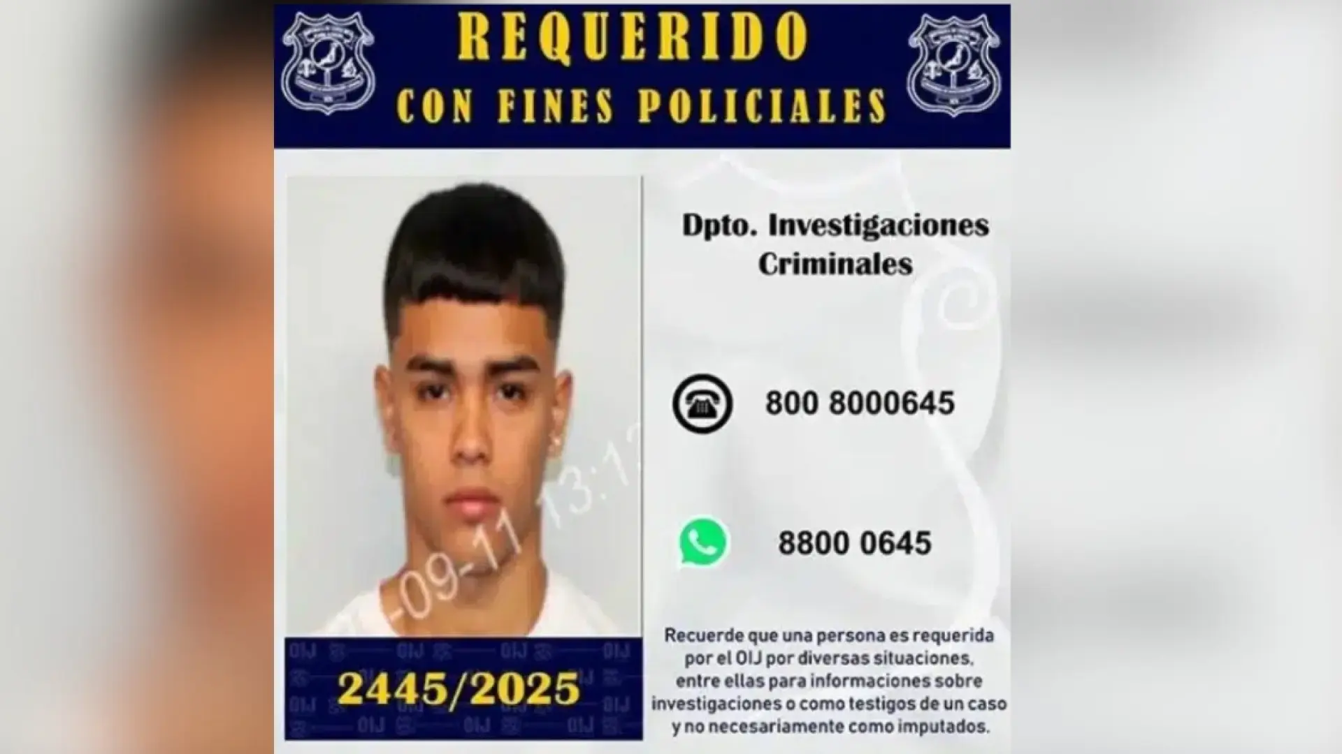 Podría ser la persona ejecutora del homicidio. La persona que acciona el arma contra la víctima en asociación con las cuatro personas que habíamos detenido anteriormente”, ha explicado el director general del Organismo de Investigación Judicial (OIJ), Michael Soto.