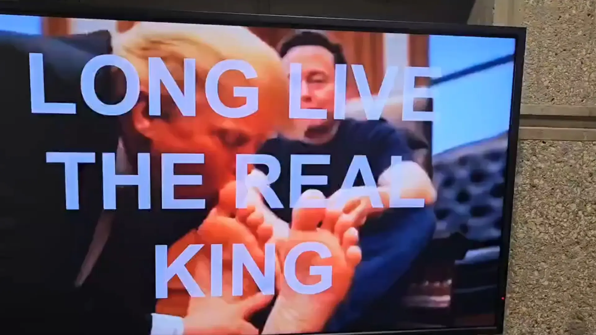 En el vídeo se observa al presidente estadounidense masajeando y besando apasionadamente los pies del propietario de X, que fue designado por Trump para realizar recortes en el Gobierno federal. En el mismo también aparece un mensaje superpuesto que reza: “Viva el verdadero rey”.