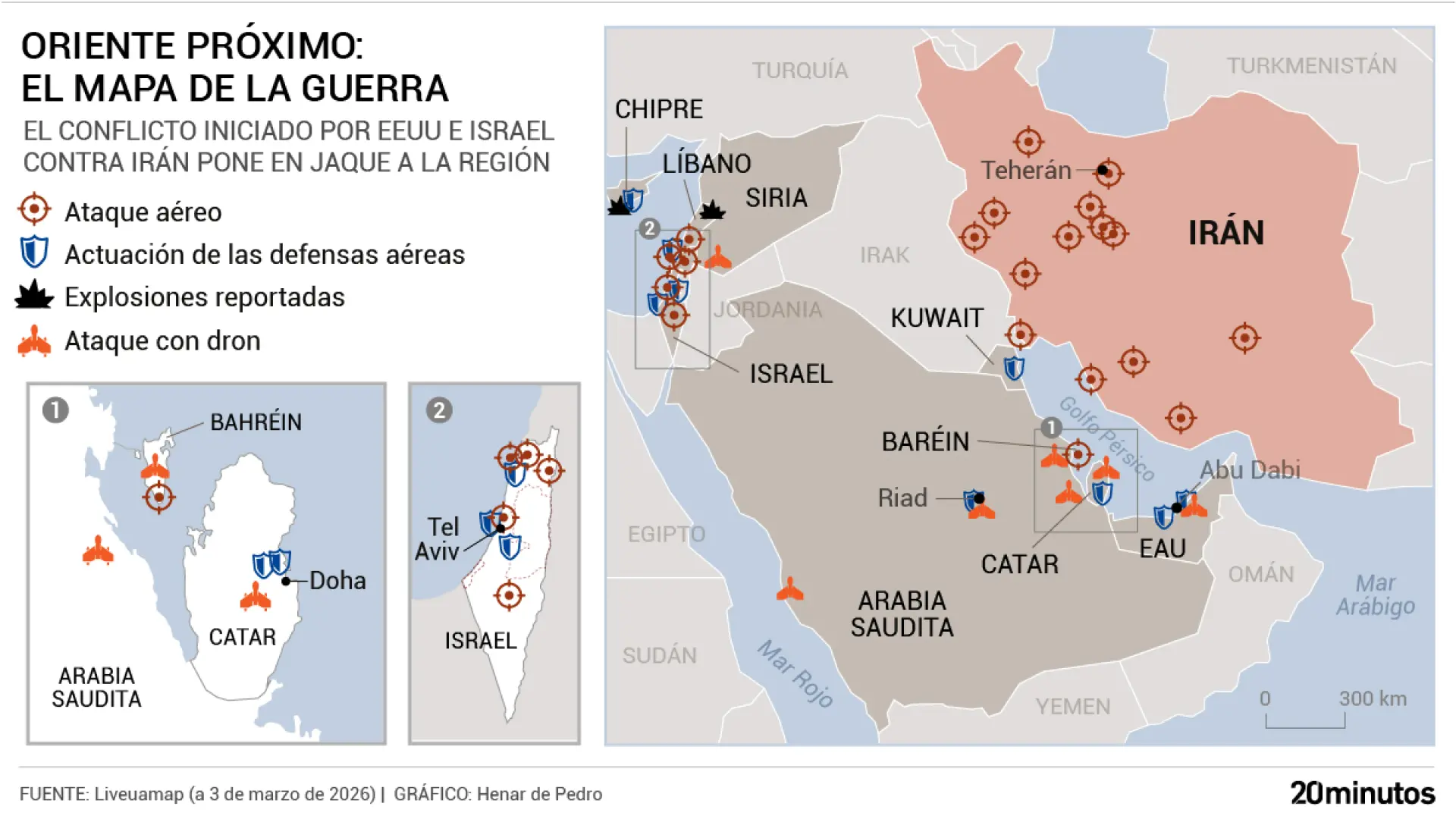 Está siendo el mayor despliegue militar de EEUU en Oriente Próximo desde la invasión de Irak en 2003. Este es el mapa escrito de la guerra en sus cuatro primeros días.