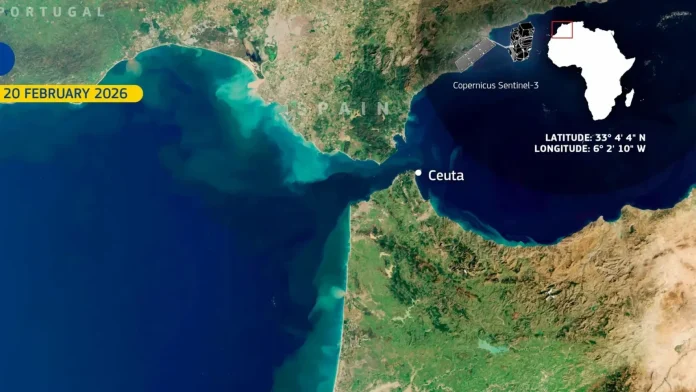 Junto al cambio de color, en las fotografías se ven manchas verdes y marrones que se internan en el mar desde la costa tanto del poniente marroquí como del golfo de Cádiz, fruto de la gran cantidad de sedimentos arrastrados precisamente por las lluvias.