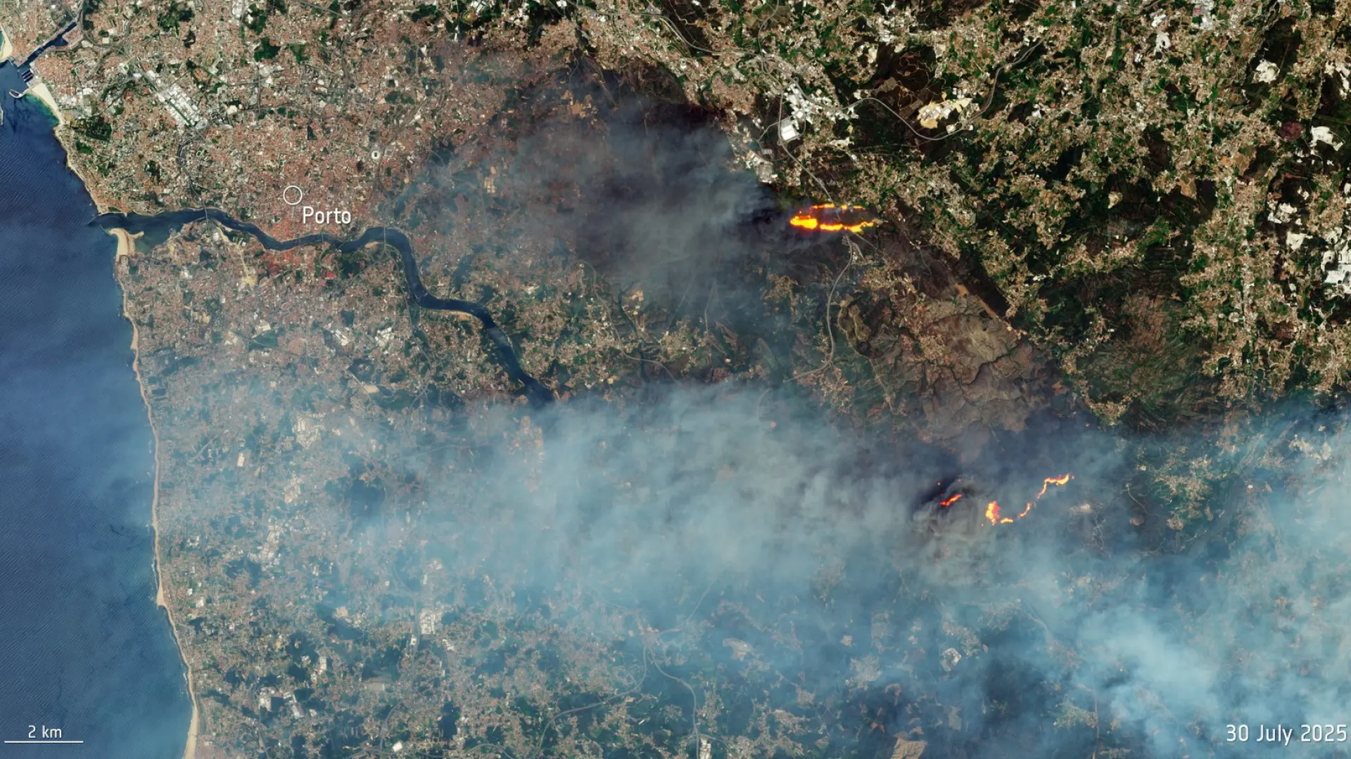 Los puntos calientes del incendio se encuentran en la localidad de Nespereira, donde sus vecinos pueden contemplar tres densas columnas de humo que se elevan en dirección al pueblo de Alvarenga, así como una cuarta columna en el término de Vilar de Arca, perteneciente al municipio de Cinfães. Algunos usuarios en la red social X han compartido cómo ven el incendio desde sus localidades limítrofes, tanto españoles como portugueses.