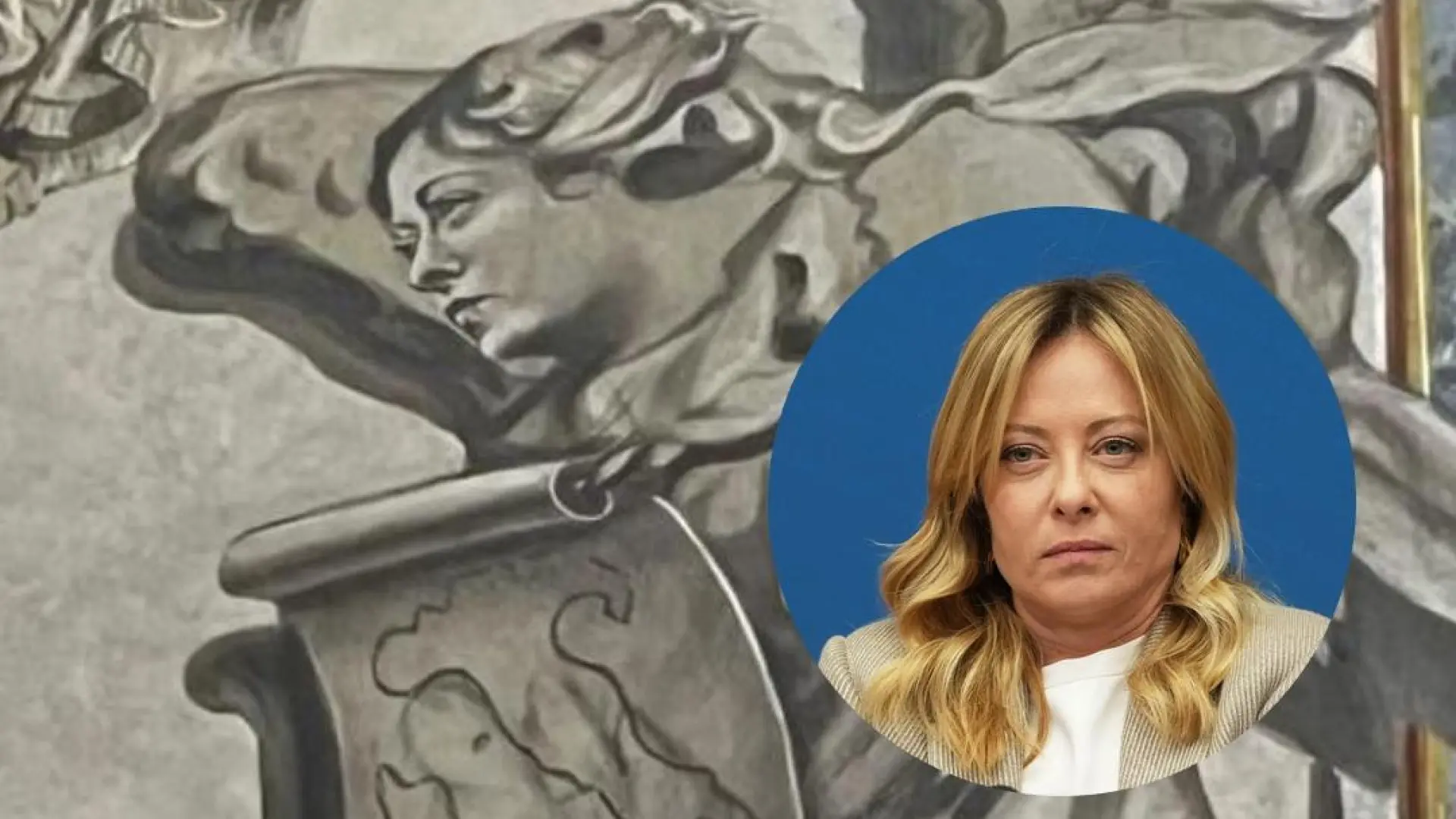 Sobre el busto de mármol del rey Humberto II de Saboya en la Basílica de San Lorenzo in Lucina se encuentran los frescos de dos ángeles y uno de ellos apareció en los últimos días con una nueva cara que se asemeja a la de Meloni, muy diferente a la figura alada que existía antes sosteniendo un pergamino, en frente de otro ángel que ofrece la corona al soberano.