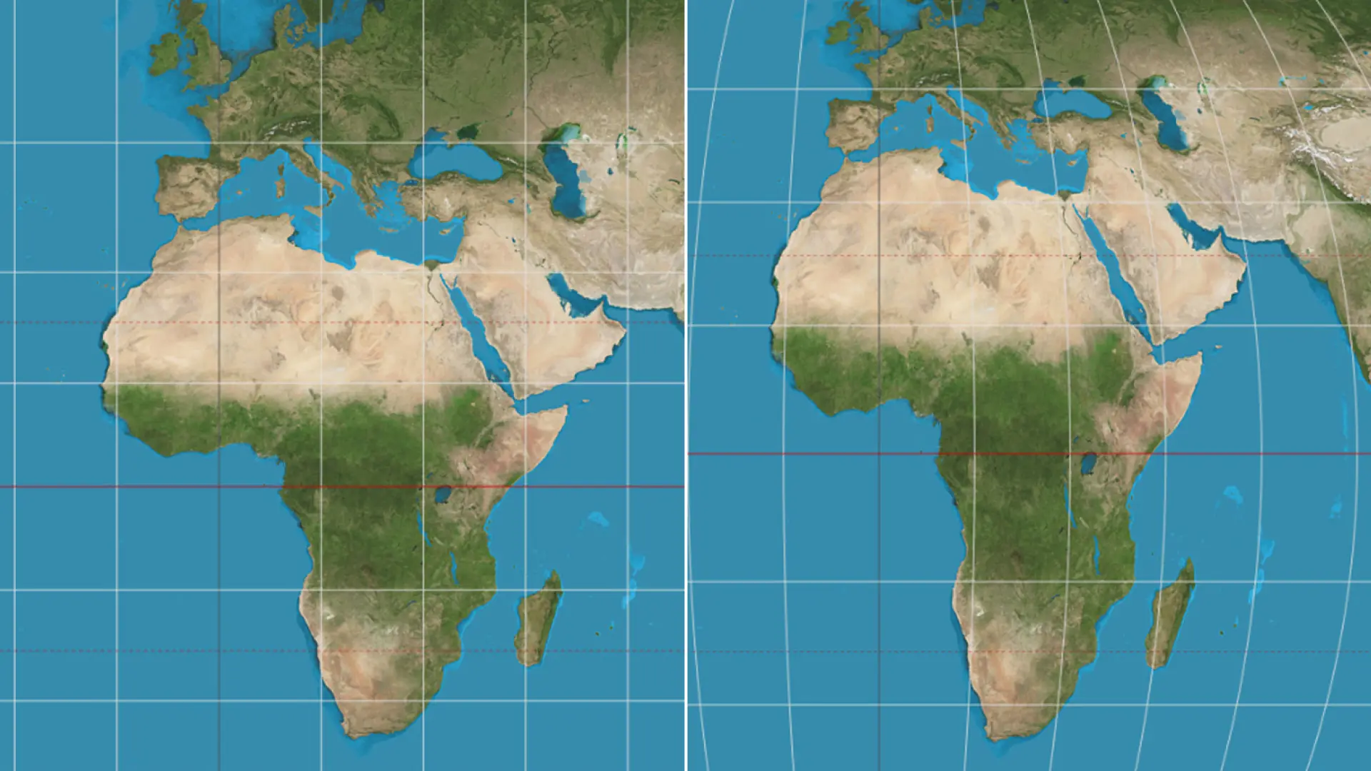 Pero, aunque ese mapa busca simplificar la tarea de los navegantes en una tierra esférica, también distorsiona enormemente el tamaño de los territorios.