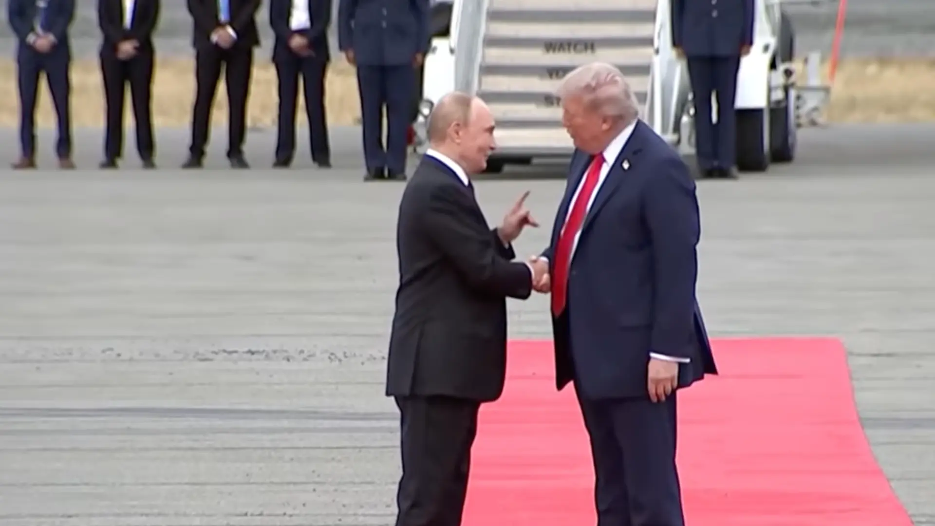 El mundo se está acostumbrando a los momentos históricos y este viernes Donald Trump ha recibido a pie de pista al presidente ruso, Vladimir Putin, a la llegada de este a Alaska, donde ambos se ven para tratar el futuro de la invasión de Ucrania. Se trata de su primera reunión desde la vuelta de Trump a la Casa Blanca, y no se ven cara a cara desde el año 2018. Aunque los líderes estaba previsto que se vieran a solas, no ha sido así, según ha confirmado el Gobierno estadounidense. Están junto a sus asesores finalmente, en un cónclave que ha comenzado alrededor de las 21.30 horas (hora española). A Trump, por ejemplo, le acompañarán el secretario de Estado Marco Rubio y el enviado especial Steve Witkoff.