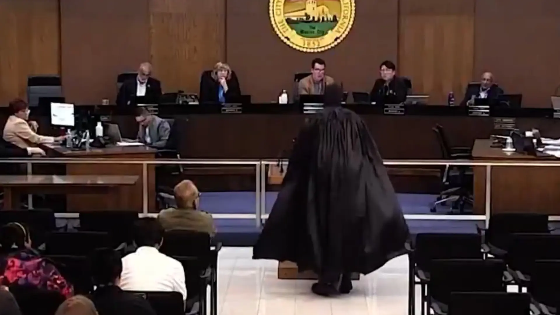 El hombre, vestido con un disfraz de Batman, se enfrentó airadamente a los funcionarios de Santa Clara durante una reunión del Concejo Municipal para condenar la postura de la ciudad, ubicada al norte del estado, con respecto a la cooperación con el ICE.