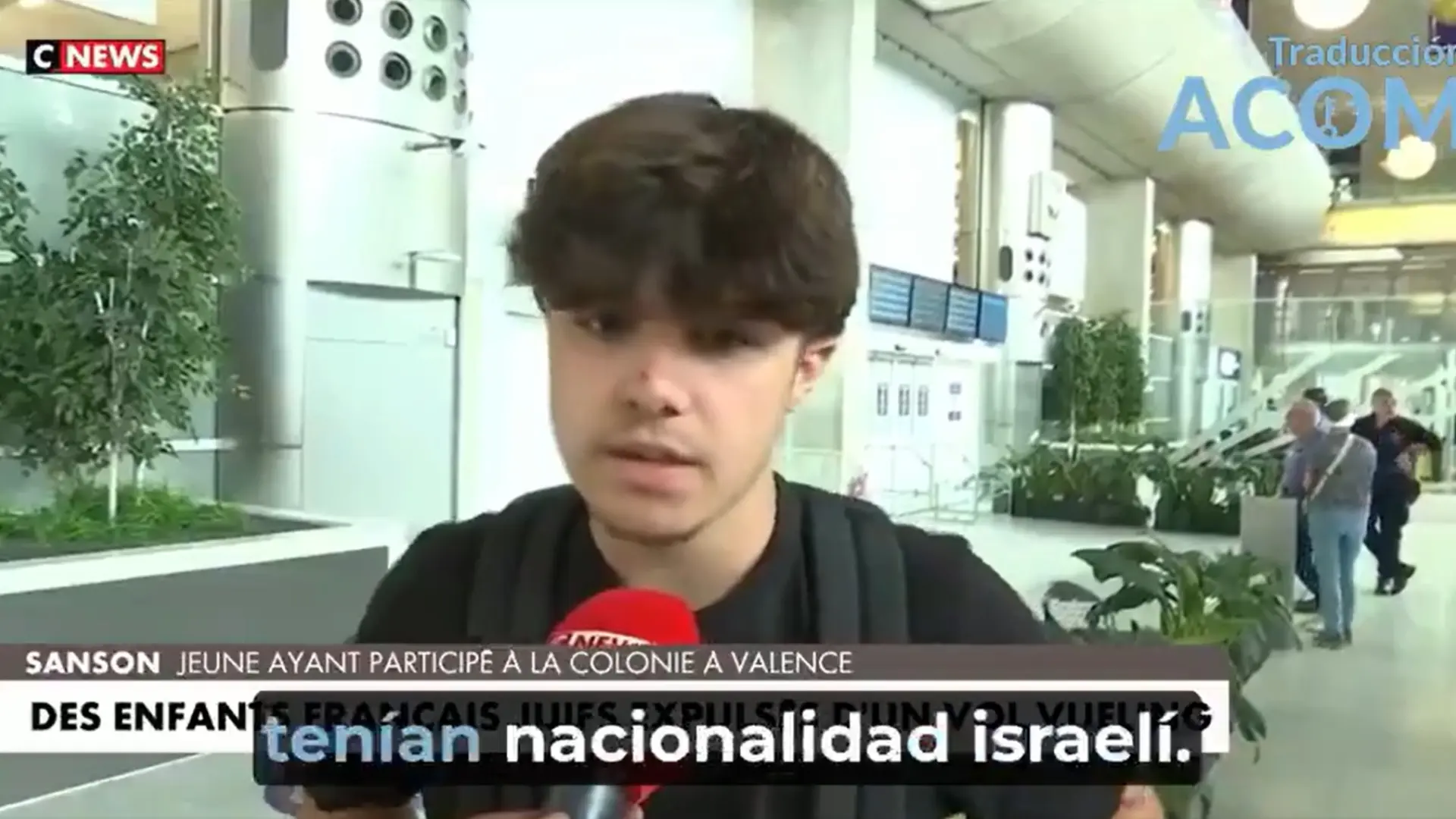 En la entrevista, compartida en X por la organización española Acción y Comunicación sobre Oriente Medio (ACOM), que “promueve la relación entre España e Israel y lucha contra el antisemitismo trabajando con gobiernos, partidos y la sociedad civil” -según detalla en su perfil en la citada red social-, el joven ofrece su relato: “Nos instalamos en el avión. Éramos 50 en total con toda la colonia. Uno de mis amigos dijo una palabra en hebreo y el personal de a bordo vino a hablar con él diciéndole que si lo volvía a hacer, porque habló en voz alta, casi gritando, que si volvía a hablar tan alto, llamarían a las fuerzas del orden para sacarnos del avión”.