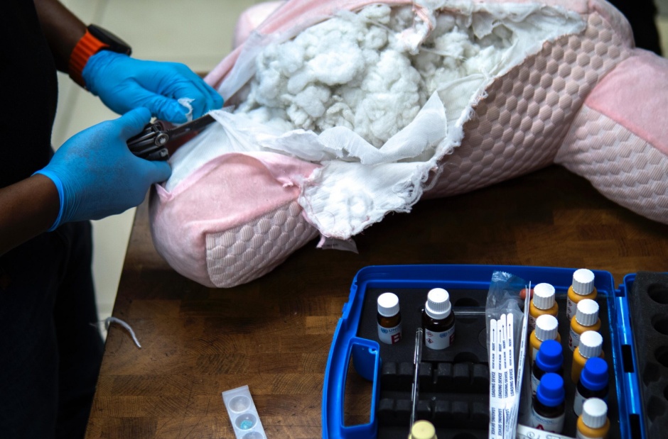 Santo Domingo.- Agentes de la Dirección Nacional de Control de Drogas (DNCD) y miembros del Ministerio Público, dentro de su misión de enfrentar el trafico de sustancias narcóticas, frustraron el envío de un peluche relleno de fibras de poliéster, impregnados con cocaína, que según el manifiesto serían enviados a Australia.