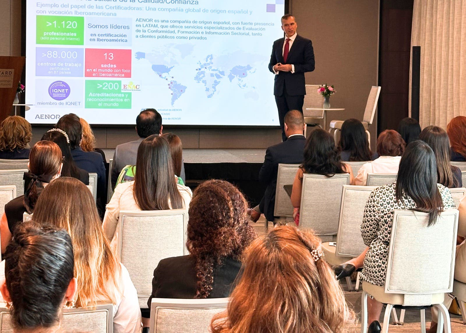 Ariel Espejo, Director País de AENOR República Dominicana, ofreció las palabras de bienvenida, seguido de la ponencia magistral “La Igualdad como motor de transformación”, a cargo de Rafael García Meiro, CEO de AENOR.